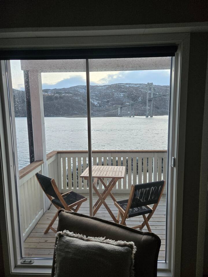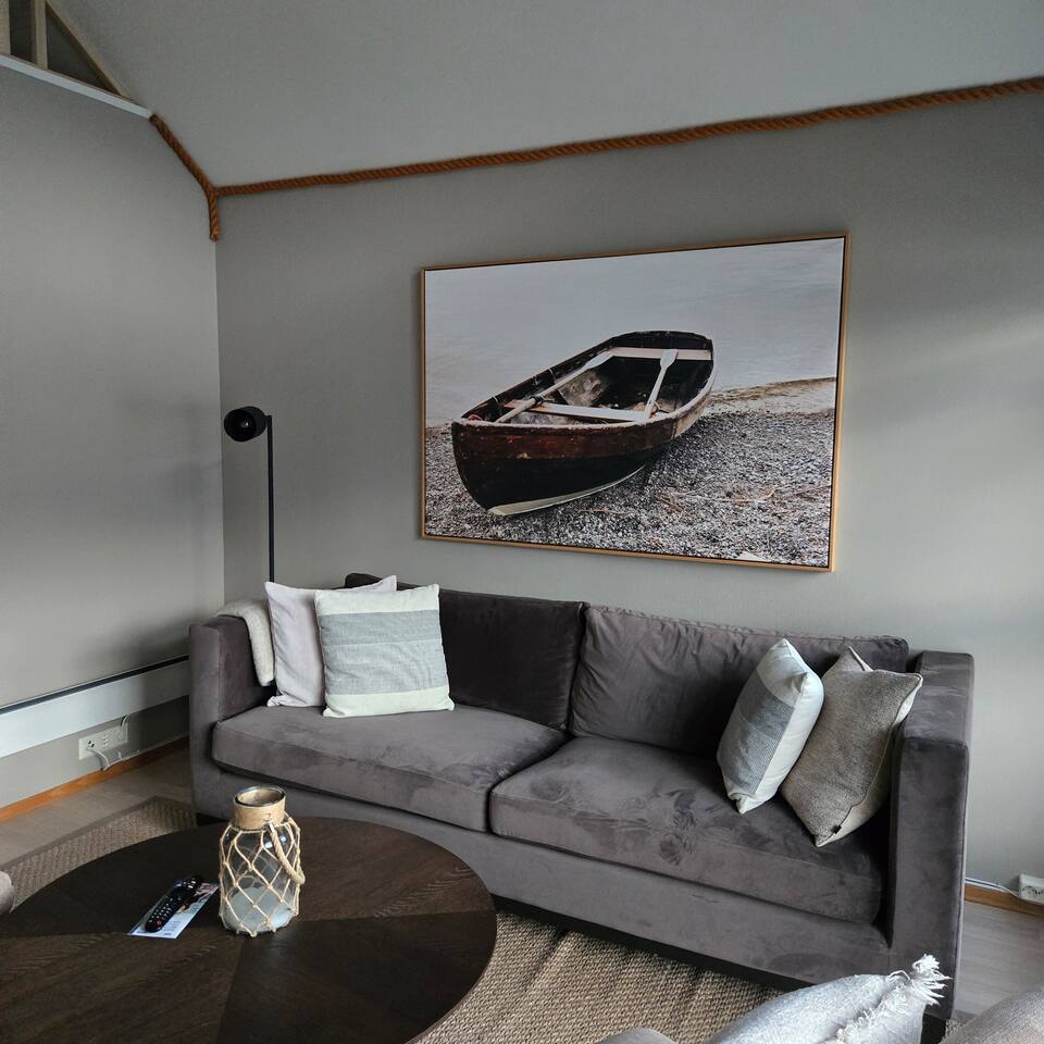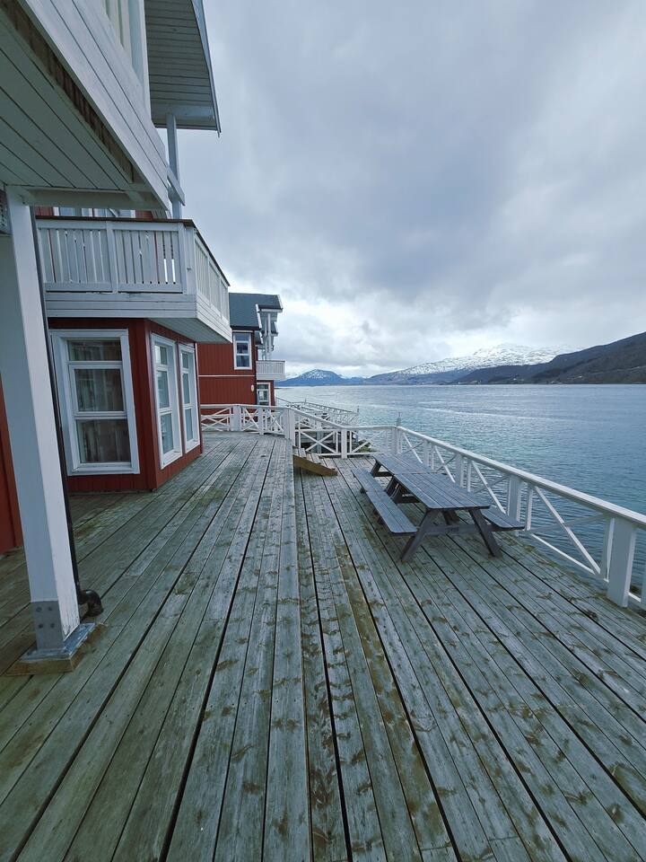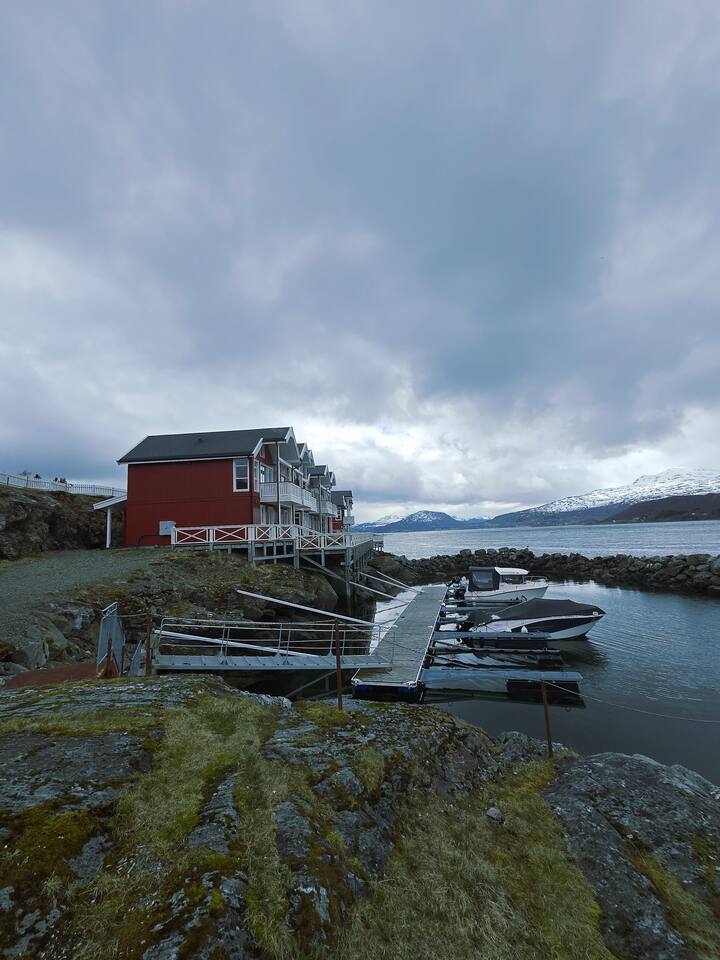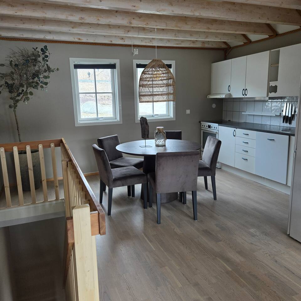 Modern Seahouse at Tjeldsundet! Stay right on the water’s edge with panoramic views of the current and mountains. Perfect for Northern Lights and hiking. Sleeping arrangements: BR 1: Double bed. BR 2: Two single beds. Loft: Two beds (low ceiling, steep stairs – ideal for kids/teens). Fully equipped kitchen, Wi-Fi, and balcony. Only 15 min from Evenes Airport (EVE). The perfect hub for Lofoten and Harstad. Welcome to a unique stay.