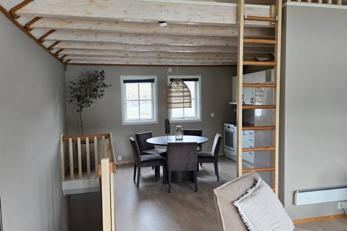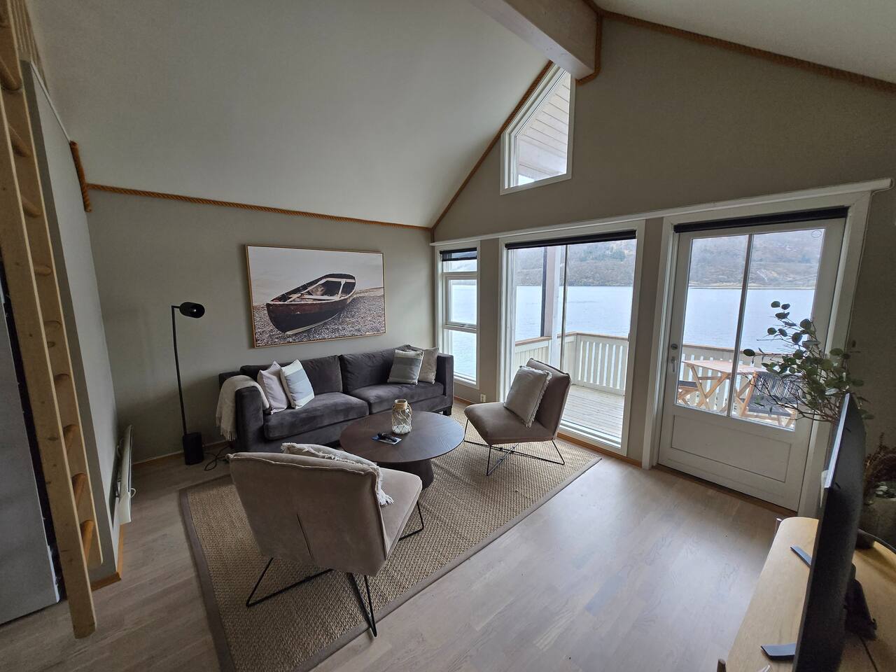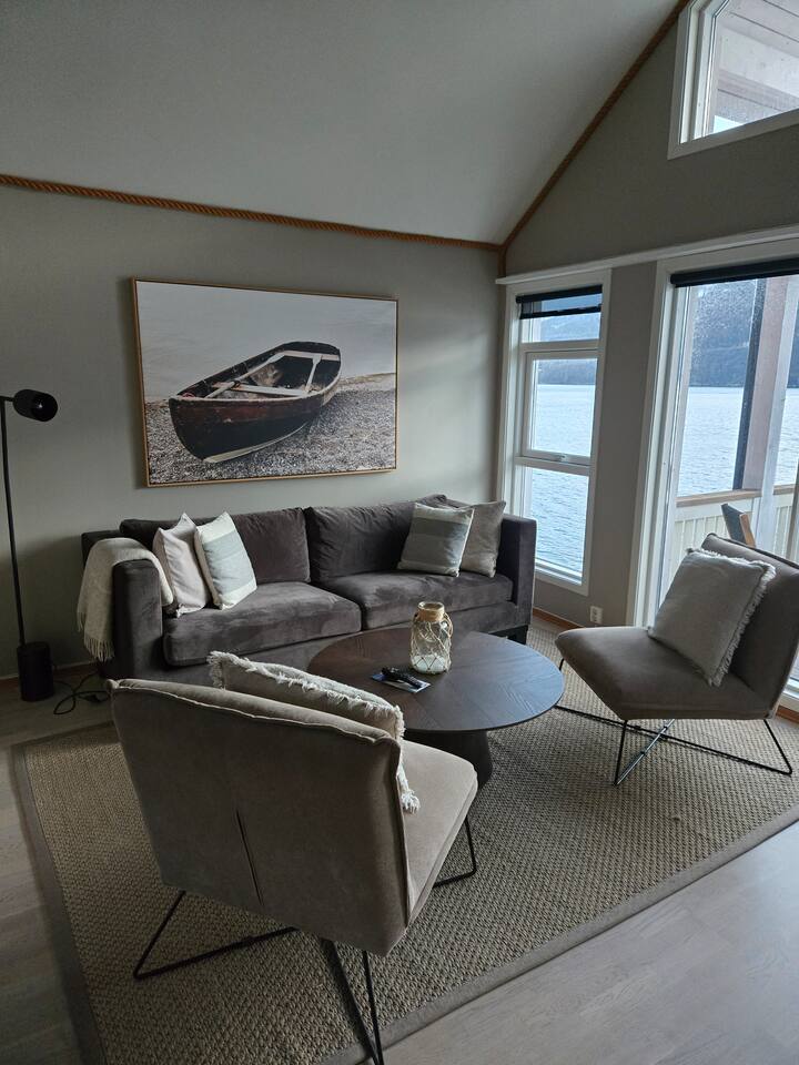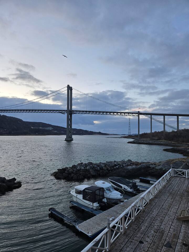 Modern Seahouse at Tjeldsundet! Stay right on the water’s edge with panoramic views of the current and mountains. Perfect for Northern Lights and hiking. Sleeping arrangements: BR 1: Double bed. BR 2: Two single beds. Loft: Two beds (low ceiling, steep stairs – ideal for kids/teens). Fully equipped kitchen, Wi-Fi, and balcony. Only 15 min from Evenes Airport (EVE). The perfect hub for Lofoten and Harstad. Welcome to a unique stay.